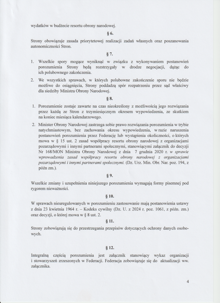 12 czerwca 2025 roku wicepremier, minister Obrony Narodowej Pan Władysław KOSINIAK-KAMYSZ podpisał porozumienie z Federacją Stowarzyszeń Rezerwistów i Weteranów Sił Zbrojnych Rzeczypospolitej Polskiej.