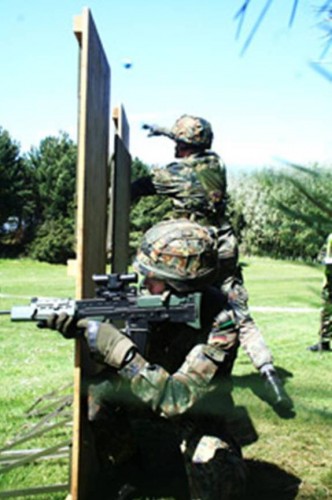 • taktyczny tor przeszkód z marszobiegiem na 3 km i strzelanie z karabinku L85A2 do celów ukazujących się w odległości 300 m;